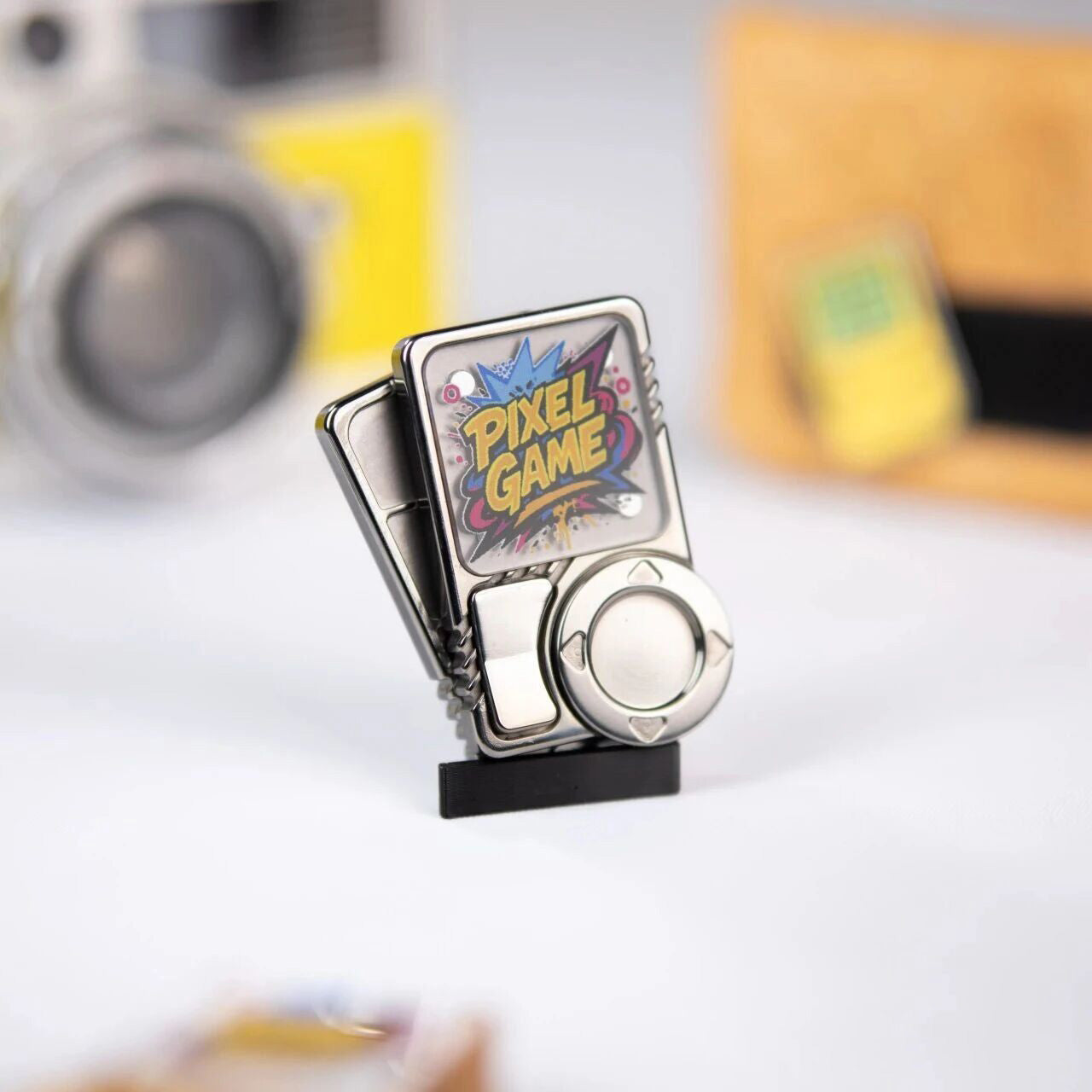The device includes a smooth high-speed rotor, push-plate flippers, and retro game-inspired buttons, offering multiple interactive ways to relieve stress and stay focused. Its compact pixel-game design sparks nostalgia while delivering a satisfying sensory experience for kids, teens, adults, and anyone who loves expressive desk toys.
